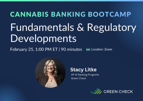 Join Green Check’s cannabis banking expert Stacy Litke for a comprehensive bootcamp covering the fundamentals of cannabis banking, recent federal legislative changes including H.R. 5371, and practical strategies for building compliant, profitable cannabis programs at your financial institution.